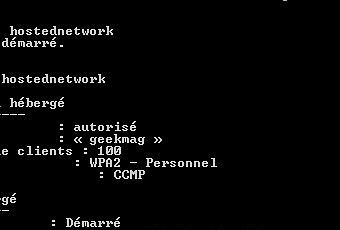 netsh wlan set hostednetwork mode=allow ssid= »geekmag » key= »france78″