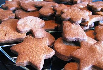Faire chauffer le four à 180°C. Étaler la pâte sur environ 0,5 cm d'épaisseur et découper des formes à l'aide de différents pochoirs. Les déposer sur une plaque de cuisson recouverte de papier sulfurisé. Enfourner environ 12 minutes en surveillant la cuisson. Une fois cuits, laisser refroidir les biscuits sur une grille.