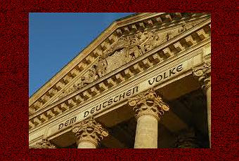 En Allemagne, à la fin de la Première Guerre Mondiale. le magnifique dôme du palais du Reeichstag offrant l'ouverture et la transparence, signé de l'architecte Norman Foster, portait l'inscription DEM DEUTSCHEN VOLKE, voulant dire "pour le peuple Allemand". Ceci avait été confectionné avec des fragments de canons fondus datant des guerres Napoléoniques.Quand Hilter est venu signer son infâme passage dans l'histoire du pays, ces mêmes mots prenaient un sens au goût amer.