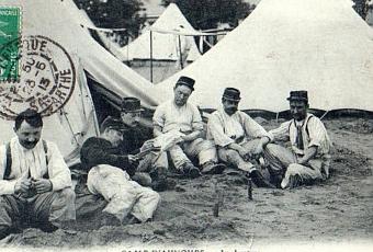 Un soldat décrivait ainsi le camp de toile d'Auvours en juin 1911 : "Nous sommes 4000 sous les pins. nous couchons sous des tentes. Les officiers sont dans les baraquements. Tu peux juger du confort et de la poussière! Et pas de bonne table pour sortir".