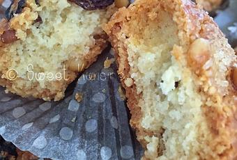 150 g d'amandes en poudre150g de sucre150g de beurrele zeste d'un citron1 oeuf50 g de pignons50 g (ou plus) de raisins secsécorces d'orange confites coupées en petits morceaux.1 jaune d'oeuf + un peu de lait pour la dorurePréchauffe le four à 170°.Tu mélanges la farine, les amandes, le sucre et le beurre en émiettant bien le tout. Ajoute le zeste de citron, d'orange et tous les fruits secs.
