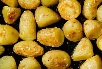 Faire chauffer le four à 210 degrés. Laver les pommes de terre et faire les couper si nécessaire de façon à ce que chaque morceau corresponde à une bouchée.