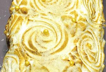 Montez les blancs en neige en incorporant la moitié du sucre quand ils commencent à mousser. Continuez de fouetter et verser le reste du sucre pour les serrer. Enfin,incorporez l'arôme noix de coco et dressez votre meringue sur la bûche avant de la faire brunir au chalumeau