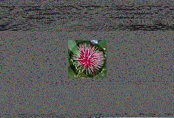 La fleur est assez extraordinaire en forme de pelote hérissée avec des couleurs crème et rouge vif. Elle apparaît de façon tardive en fin d'automne et début d'hiver. Elle formera des fruits remplis de graines pouvant rester sur la plante de nombreux mois. Ils sont de forme ovoïde et pointu à leur extrémité.
