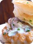 Découpez de petits chapeaux sur le haut des feuilletés et réchauffez-les au four quelques minutes.