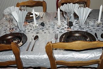 Bonjour à tous, comme annoncé hier voici ma table du jour de l'an. Une table noire et argentée avec la jolie vaisselle que m'a offert Petit Papa Noël : 4 jolies assiettes, 4 verres à eau et des jolis couverts. Voyez pas vous même ... Merci papa Noël, tu as de très bons goûts !!
