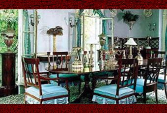 Un style bien à elle, où elle mêle différents styles : le Napoléon III, le Regency anglais et le Directoire avec le Biedermeier. Tout le contraire du minimalisme. Ainsi l’imprimé ocelot, ou le lierre, souvent au sol côtoie le chintz fleuri et les rayures bayadère, la fonte, les lampes en opaline.
