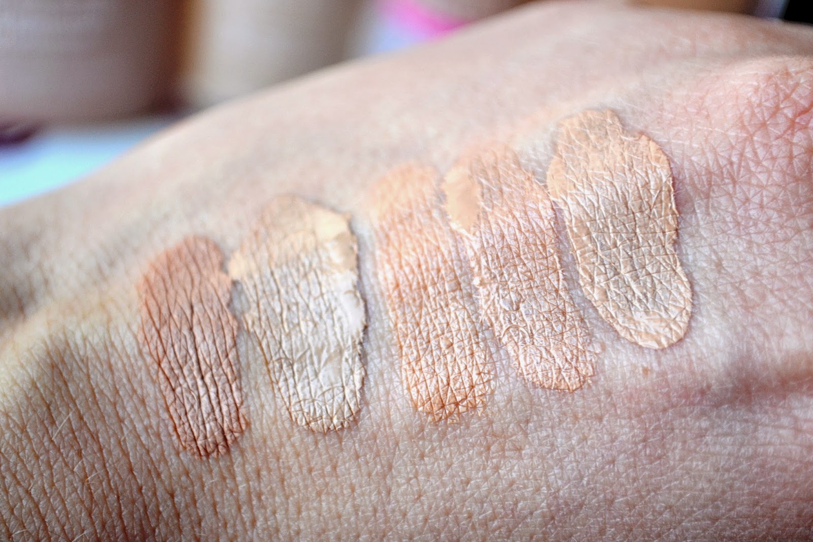Clinique en teinte 03, Revlon en teinte 180 Beige Sable, Benefit en teinte Honey, Maybelline en teinte 120 Classic Ivory, Yves Saint Laurent en teinte B20.