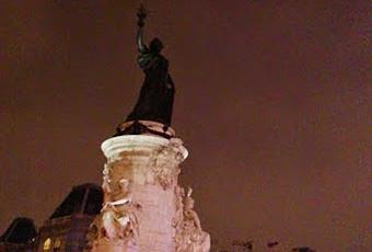 Recueillement et tristesse Place de la République, en hommage aux victimes de l’attentat contre Charlie Hebdo
