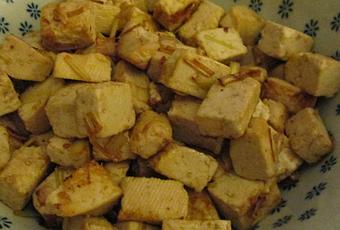 Découper le tofu en cubes d'environ 1-2 cm de côté.