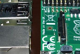 De même, lorsque l'on retourne le Raspberry Pi, on constate le passage à la carte micro-SD qui s'enfiche avec un système de " push-pull ". Adieu la " grosse " carte SD!