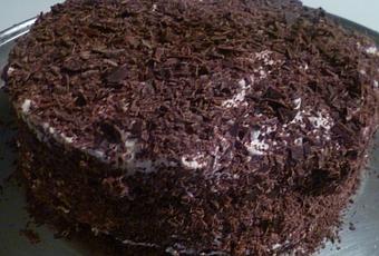 Faire des copeaux avec le chocolat et en recouvrir le gâteau.