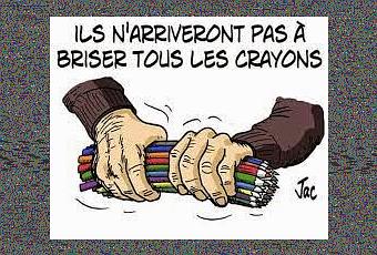 Cet été, nous avons adopté deux petits chats, je ne pensais pas qu'ils feraient l'objet d'un article. Au début baptisés Horreur et malheur puis "Audace " pour la petite chatte blanche qui s'installe dans notre maison et Byron pour son gros frère gris qui explore le jardin. "Audace" toujours à la recherche de câlins et qui m'empêche d'écrire cet article en ronrons et léchouilles presque coucher sur le clavier.Et c'est ce mot AUDACE qui est à la première place des journaux suite au drame du Journal Charlie hebdo. Grâce à cette audace des premiers dessinateurs des grottes, nous avons des informations sur nos origines ou ceux d'Egypte ou d'ailleurs. Tous ont voulu laisser des traces. Ceux d'aujourd'hui illustrateurs, photographes, auteurs, scénaristes, cinéastes colorent nos vies. Pourquoi voudrait-on être encore dans l'obscurité alors que notre monde offre de si beaux paysages audacieux souvent. Leurs dessins, leurs planches parlent autant que les mots et nous font vibrer, réfléchir et enrichissent nos connaissances. Ils heurtent et bousculent nos idées mais pour mieux nous faire avancer et ne pas être de pauvres chèvres bêlantes. Partout des crayons se lèvent, l'encre coule, nos cœurs crient.Nous sommes tous CHARLIE.Merci à eux, je vais mettre ici le très beau texte de mon neveu Jacques Emmanuel en leur hommage. "Ils étaient là. Qu’on les adule, les haïsse, les dédaigne ou les craigne, ils étaient là ! Très proches, à portée de porte-monnaie. Et c’était bien cela, l’essentiel.Poètes de l’indécence, insensés virtuoses de la malséance, turbulents trublions, guetteurs aiguisés de la bêtise humaine, bricoleurs de mauvais esprit, incorruptibles pourfendeurs de la bien-pensance repue, barioleurs impitoyables de l’intolérance... Et tant d'autres figures de style restant à exhumer, remisées dans des cartons aujourd'hui maculés de sang.Surtout, surtout, infatigables veilleurs de notre Liberté d’écrire, de crier, de penser…