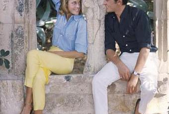 « Un couple culte du cinéma. En 1963, la jeune Fonda rencontre Alain Delon pour « Les félins ». Adolescente, elle s’échappait déjà en France pour fuir les démons familiaux, et y trouver sa voie. Pendant la préparation du film, comme cet après-midi à la villa Torre Clementina à Roquebrune-Cap-Martin, Jane se lie d’amitié avec le jeune premier du cinéma français, mais aussi avec Simone Signoret. Remarquée par Roger Vadim pour sa prestation dans le film de René Clément, elle deviendra vite sa femme, et son égérie. » Paris match