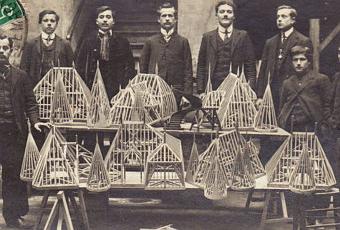 Leur phase d'apprentissage se terminait par la présentation à leurs pairs d'un chef d’œuvre demandant parfois des centaines d'heures de travail. On voit ici une exposition de charpentes en 1912.