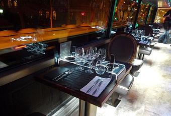 Voilà, les photos parlent beaucoup mieux que mes mots.Vraiment si vous avez une occasion de monter à bord du Bustronome et de passer ces deux heures magiques à travers notre belle capitale, faites le, c'est vraiment top.Sachant que vous pouvez le faire à l'heure du déjeuner ou du diner : comptez 65 euros pour le déjeuner ou 85 avec les boissons, 95 euros le diner ou 125 avec les boissons.Et sachant aussi que vous pouvez le privatiser, avec 38 couverts au total.