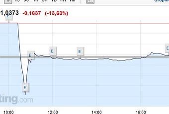 La réaction des marchés n’a pas tardé, et a été plutôt brutale. À l’annonce, l’euro a véritablement dévissé sur les marchés en face du franc suisse pour s’établir très vite en dessous de la parité (on est tombé pas loin de 0.86 euro par franc suisse) pour remonter dans l’heure autour de la parité autour de laquelle il semble maintenant tourner. Au passage, cette volatilité permettra de rappeler à un peu d’humilité les comiques qui prétendent que les Banques Centrales sont indispensables pour éviter les fluctuations trop rapides des monnaies…