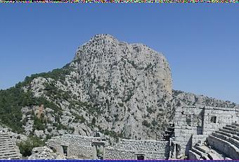S'il y a deux choses à voir absolument à Termessos, il s'agit du théâtre et de la nécropole sud. Le théâtre constitue le clou du spectacle après une bonne marche de 45 minutes où on sue à pleines gouttes. Arrivé au sommet, on en oublie tous les efforts et on reste en extase. Un théâtre avec des montagnes qui l'entourent plongeant sur la vallée. C'est un des points de vue les plus inoubliables. C'est comme si les habitants de l'Antiquité avaient un double décor. Il n'est pas aussi bien entretenu que celui d'Ephèse ou Pergame mais c'est peut-être pour cela qu'on l'aime. C'est la nature qui décide ce qu'elle en fait. Avec 66 mètres de diamètre, il pouvait abriter 4 200 spectateurs. Asseyez vous ou allongez vous car prendre un bain de soleil ici, c'est comme être tranquille dans son jardin, le paysage en bonus. Si vous vous sentez la force de continuer, prenez la direction du sud, là où une nécropole impressionnante dort paisiblement. Ces sarcophages et ces tombeaux perdus au milieu du paysage n'ont pas connu le repos éternel entre les pilleurs et les séismes, certains tenant debout, d'autres complétement renversés. Ils ont été construits en taillant les roches alentours. Là aussi, le sommet vous procurera une vue inoubliable.