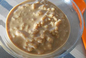Pour 8 pots : 1L de lait, 120g de riz rond, 140g de pâte de praliné (à défaut tablette pralinoise)
