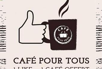 Une page Facebook permet de soutenir et de partager l’action vers le plus grand nombre, quel que soit le lieu où vous soyez. Action se concrétisant grâce à vous et tout simplement en allant rejoindre la page Facebook dédiée CAFE POUR TOUS, d’offrir à chaque nouveau j’aime (like), 1 café offerts aux Restos du Cœur.