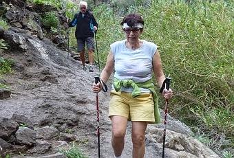 Après Santiago del Teide, descente vertigineuse en voiture du col vers Masca. Ensuite trois heures de descente sans mollir dans la gorge pour 600 mètres de dénivelé seulement. Un baranco impressionnant. Dans la seconde partie on cherche sans cesse notre chemin, au retour aussi d’ailleurs. Casse-croûte bien mérité en bord de mer. Une plage volcanique de gros blocs noirs. En d’autres temps je me serais baigné mais il y a un peu trop de vagues.