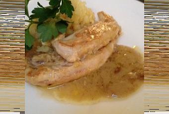 Servir à l’assiette la purée et les escalopes et napper de sauce citron