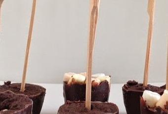 - placez ensuite le chocolat tiède dans les moules... Si vous utilisez des pots de petits suisses, visez un remplissage à la moitié ou aux 2/3, c'est suffisant!