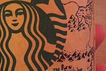 Décidément, il y’a beaucoup de gens qui dessinent sur leur gobelet Starbucks pendant la pause déjeuner. Il y’a ceux qui détourent le logo avec des super-héros ou les artistes qui transforment le célèbre gobelet en oeuvre d’art et il y cet anonyme qui a eu le tempe de dessiné le carte de la Terre du Milieu (Le Seigneur des Anneaux) pendant l’intercours. Si c’est réalisé de mémoire, chapeau.