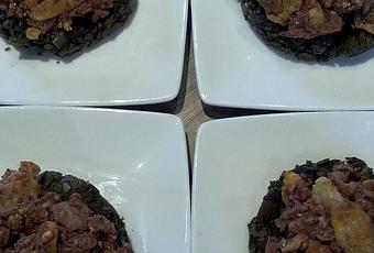 On forme des petits tas / pyramides du mélange céréales / chocolat et on les dépose sur les fonds de tartelette.