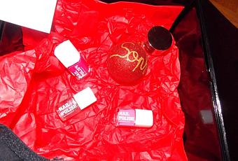 Bestform est créative : elle a mis un pied dans le monde de la beauté et de la détente en éditant une box contenant : une boule rouge à mon prénom, deux vernis rose (pale et fushia) et un à paillettes, un baume à lèvres à l’odeur gourmande, un mug et une parure en dentelle.
