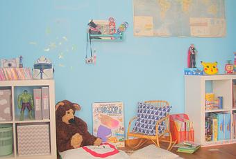 Aujourd'hui je vous emmène faire un tour du côté de la chambre bleue de notre maison. Celle remplie de super héros, de Lego et autres jeux de construction, de jouets vintages ou pas, de couleurs vives et de bonne humeur...Celle de mon grand garçon de bientôt six ans ! Beaucoup de choses ont changés depuis notre emménagement et bien que nous n'avons toujours pas eu le temps de la repeindre, que je n'ai toujours pas trouvé le tapis idéal ni les rideaux d'ailleurs ( mais je ne désespère pas ) c'est une pièce que j'aime beaucoup. Par la suite j'aimerais qu'elle soit plus dans les tons gris/noir/blanc et avec plus de touches graphique dans la déco mais je vous en reparlerais le moment venu ^_^