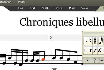 est une application de création musicale en ligne qui permet de créer, visualiser, d'imprimer et d'écouter votre partition directement dans votre navigateur. Vous pouvez ainsi travailler sur une composition depuis n'importe quel ordinateur connecté à Internet, partager le résultat avec d'autres musiciens, ou incorporer le résultat dans vos propres pages web. Nul besoin de connecter un instrument de musique pour saisir des notes, tout se fait par le biais du clavier et de la souris. L'importation peut se faire au