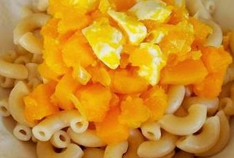 J'ai servi aussitôt ma sauce à la Kabocha et à la Feta avec mes pâtes.