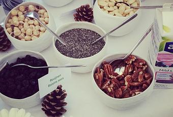 sur laquelle on ajoute des fruits secs, de la noix de coco râpée,