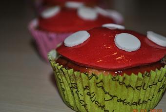 Bonjour, je vous faits unpetit coucou avec ces petits cupcakes champignons :)