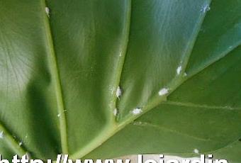 Et voilà que mon Alocasia est moucheté de taches farineuses blanches sous les feuilles...