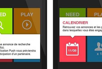 Avec la fonction NEED, on publie une sorte d'annonce pour des sportifs manquants pour notre partie, parmi nos propres partenaires. Une notifications leurs sera alors envoyée. Si 24H avant votre partie il vous manque encore des partenaires, votre recherche sera partagée sur la fonction PLAY.
