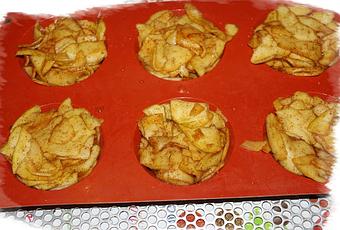 Disposer vos lamelles de pommes sucrées dans le fond de vos empreintes siliconées.