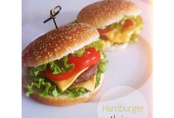 Sur la partie du bas déposer une feuille de salade puis le steack hachée cuit, le cheddar des rondelles de tomates puis terminer par une feuille de salade. (Oignons caramélisé éventuellement)