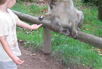 Près de 300 macaques de Barbarie habitent une grande forêt de 24 ha, dans laquelle les visiteurs peuvent se promener sans crainte, en observant les animaux en liberté. Les enfants ont la possibilité de donner des pop corns (fournis par les employés du Parc) aux singes qui piochent délicatement dans leur main. Petit Zébulon n’a pas eu peur… et le magot non plus !