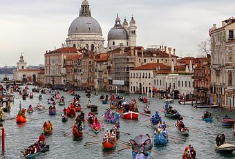 Ce matin à 11:00, le cortège des rameurs accompagnant le "Rat" pour son envol (il volo della pantegana) est parti de la pointe de la Salute, a remonté le Grand Canal jusqu'au canal de Cannaregio qu'il a remonté jusqu'en son milieu. Là, la Pantegana s'ouvre en laissant échapper une épaisse fumée orange et des dizaines de ballons. C'est le signal pour aller déguster les spécialités vénitiennes offertes dans les stands mis en place par divers restaurants vénitiens. Une belle fête populaire vénitienne.