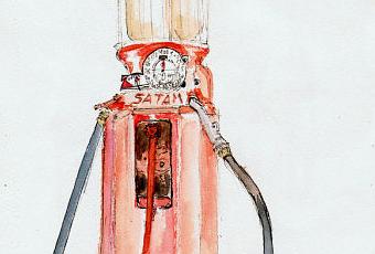 Un peu d'antiquité nostalgique avec cette pompe à essence, complètement oubliée par beaucoup, jamais vue par la plupart des personnes jeunes, ce qui est normal si on n'a pas vécu avant les années 60 !