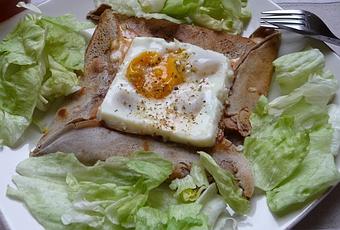 - Faire cuire un oeuf sur une poêle, puis le mettre sur votre crêpe au dernier moment.