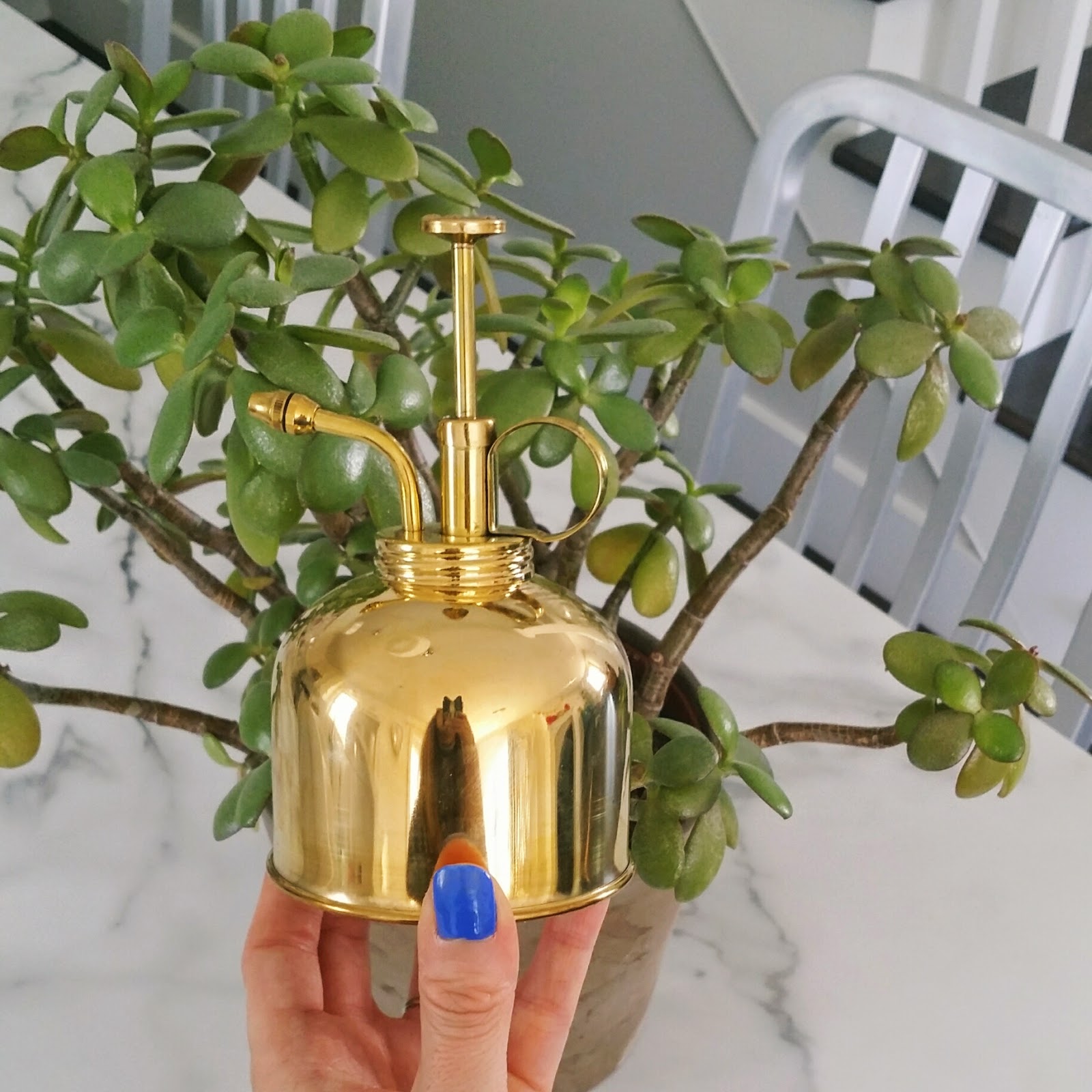 J'ai une.seule.plante et pauvre elle qui s'efforce de survivre malgré mon clair manque d'intérêt. C'est celle ci-haut acheté chez IKEA il y a 2 ans (ou peut-être 3, je ne sais plus!). Kikkerland m'a envoyé son "brass plant mister" afin que je le mette à l'essai. (Si vous me demandez mon avis, j'crois que Kikkerland a eu pitié de ma plante et s'est proposé pour la secourir!)