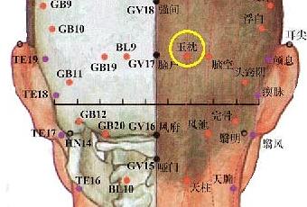 - Yu Zhen Guan (玉枕关), région de la protubérance occipitale (zone du 17VG)