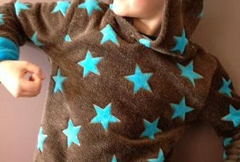 Ensuite, me voici lancée dans un sweat en doudou... modèle et tissus choisis par le mannequin lui même.... Trop mignon! Il a même participé au découpage du patron et aux premières étapes de coutures....