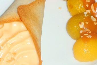 Ajouter quelques fruits pour le côté "fruité" (mirabelles au sirop, poires ou pommes pochées au sirop) et les napper d'un peu de caramel au beurre salé.