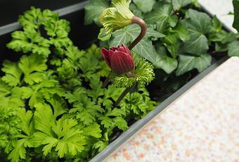 Plus de vert que de couleurs, mais pour ma part j'aime beaucoup ! Et quel plaisir de voir grandir chaque jour cette petite anémone rouge, de la voir se fermer le soir et s'ouvrir le matin...