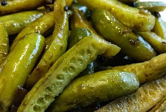 Tendlichi Bhaji Ingredients 500g ivy gourd (Coccinia grandis) 1 tbsp ghee ½ tsp mustard seeds ½ tsp cumin Salt to taste Pepper to taste or a chilli chopped Lemon juice and coconut for garnish (optional) Method: Chop lengthwise the ivy gourd in four. Heat the ghee in a pan, add in mustard seeds and when they splutter, put in the cumin seeds. Add the ivy gourd and the seasoning (pepper or chilli and salt). Mix and cook covered for 10 minutes, stirring from time to time. You may need to add in one or two tbsps of water but that’s not necessary. Serve (with the garnish, if using).