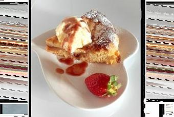 tarte brioché au sucre et a la crème servi avec une boule de glace vanille au coulis de fraise recette se soir